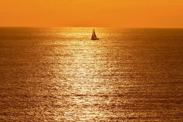 海面の光の中を進むヨットが主役です。撮影位置から遠いところにあったので、70-200mmのレンズに2倍のテレコンバーターを使用し330mmで撮影しました。ホワイトバランスを晴天日陰にして赤みを増やしています。