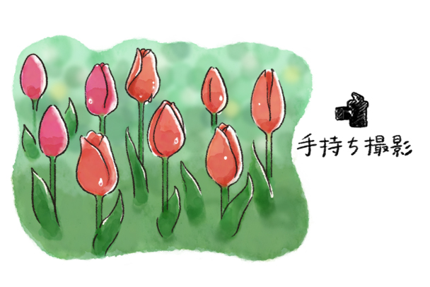 チューリップの群落は公園などでよく見かけます。全体を撮るだけではなく、少し変わった1本や背の高かったり低かったりする1本に主役を絞ることで一味違った作品になります。