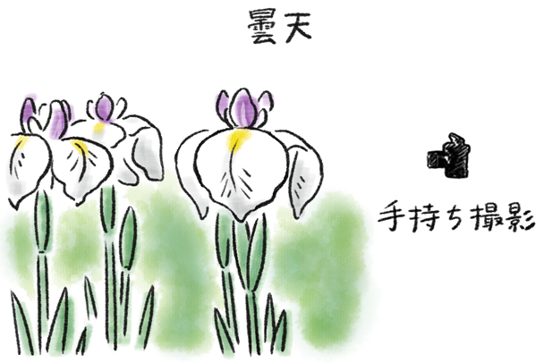 雨の似合う花はアジサイとアヤメ、そして花菖蒲。雨上がりや傘を差しながらの撮影はやや大変ですが、雨ならではのしっとりとした感じやみずみずしさが表現できます。雨対策をしっかりして、撮影しました。