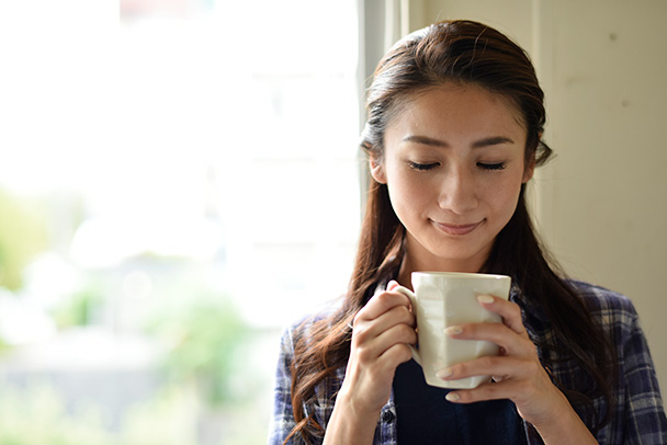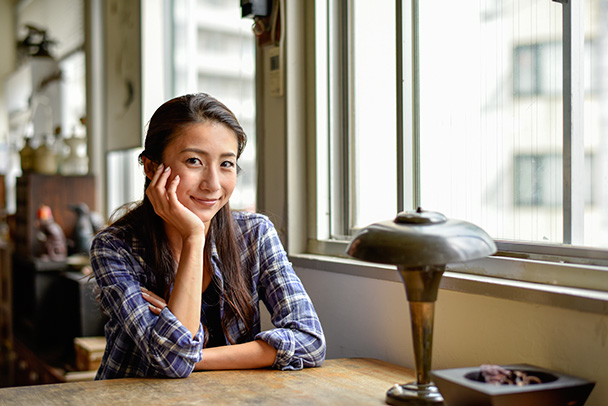 光源である窓を背にした、逆光のシチュエーションでの撮影です。背景の右半分を壁にすることで、窓の外の明るさと室内の暗さの対比がアクセントになっています。