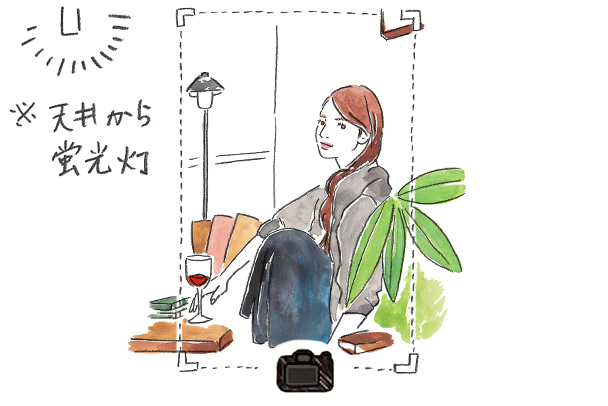 蛍光灯や電球などを使った室内の日常空間での撮影は、リラックスした雰囲気のポートレートが撮れます。間接照明など光源を自由に動かすことができることも魅力のひとつです。