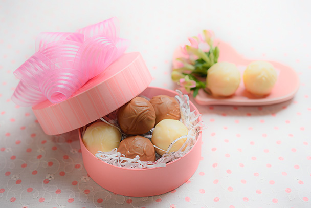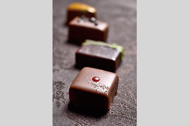 チョコレートは、カカオブラウンと言われる茶色で、ビターチョコ、ミルクチョコなど種類によりその色合いは微妙に異なります。また、シンプルでありながら細かな細工が施されており、その一つ一つはまるでアート作品のようです。カラフルさは無いものの、チョコレートの持つ独特の質感や立体感を出すために、スピードライトを使って撮影しました。
