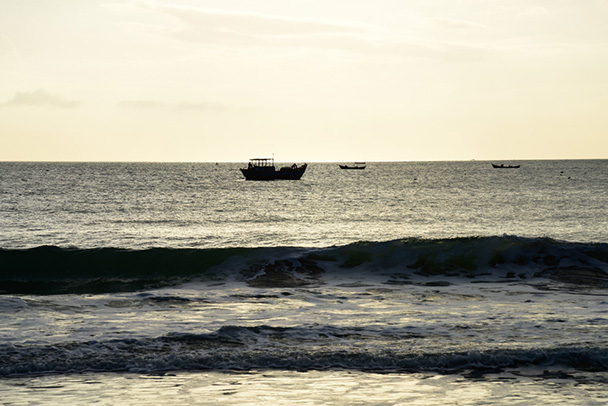朝の逆光をいかし、少しアンダーに撮ることで船や海の表情をドラマチックに見せています。
