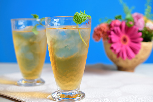 冷たい飲み物は、透明感あるグラスに浮かぶ氷が夏をイメージさせるだけでなく、清涼感あふれる被写体です。グラスや氷の透明感を出すために、スピードライトを逆光状態になるよう配置しました。また、アイスティーのように地味な色合いの被写体になると華やかさに欠けるので、ピクチャーコントロールを「ビビッド」に設定しています。