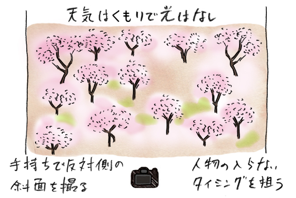 くもった日の光が強くないタイミングに、人が入らない瞬間を狙って手持ちで撮影しました。