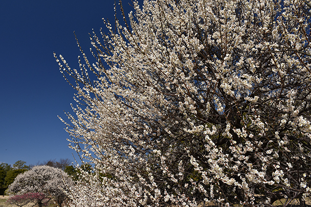 快晴の青空と白梅との組み合わせです。青空の強調のために円偏光フィルターを使用しています。
