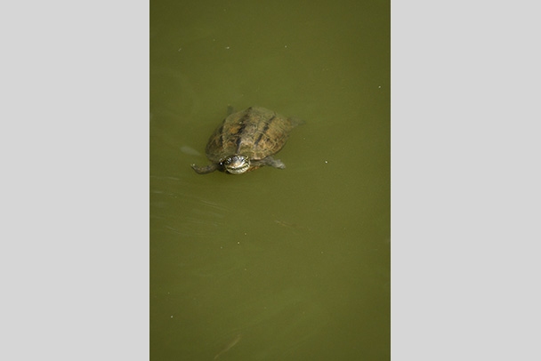 目にするのは外来種であるミドリガメ(ミシシッピアカミミガメ)が多いですが、中にはイシガメやクサガメなど日本に古くから住むカメの姿も。