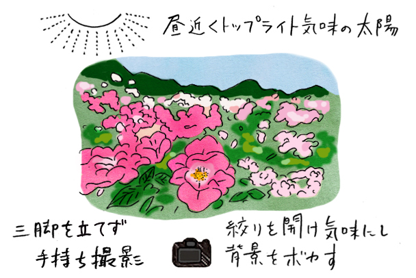 - 広角接写でできるだけ花に接近