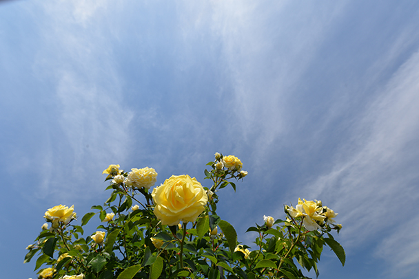 爽やかな青空を思い切って大きく入れた構図で、広がりや初夏の開放感を意図してみました。円偏光フィルターの効果で青空の色をやや濃くしています。