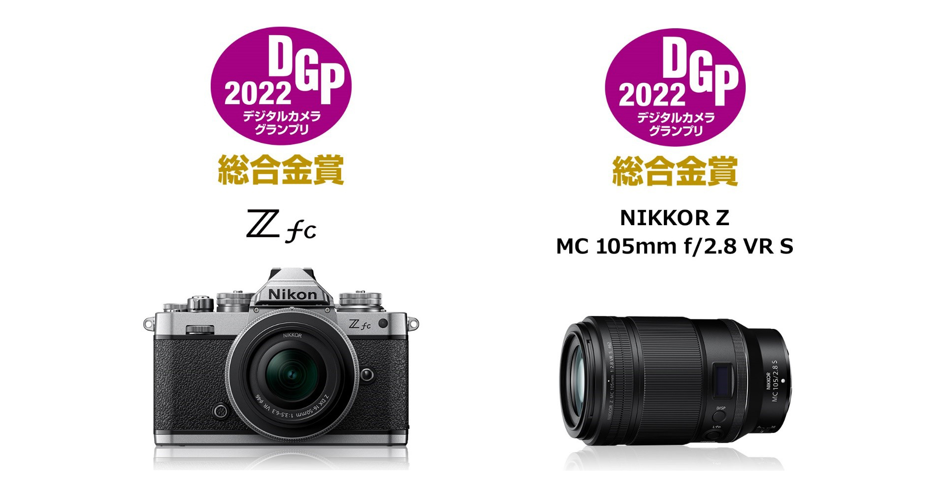 「Z fc」および「NIKKOR Z MC 105mm f/2.8 VR S」が「デジタルカメラグランプリ2022」で「総合金賞」を受賞