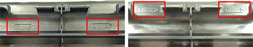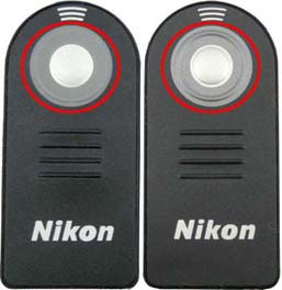 左側:模倣品(ボタン周辺の凸部分がはっきりしていない、本体部分の色が異なる等)