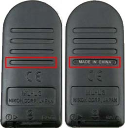ML-L3 表面、裏面(左側が模倣品、右側が純正品)