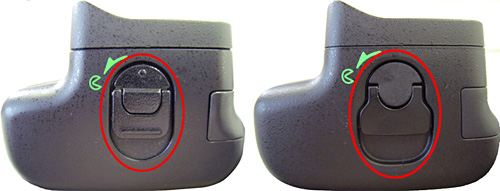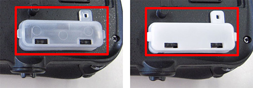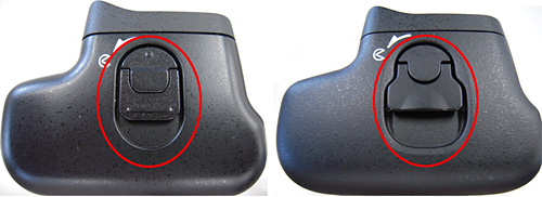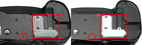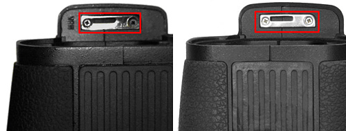 EN-EL15ホルダー MS-D11ENのバッテリー室カバー開閉ノブの形状や表面塗装が異なる。