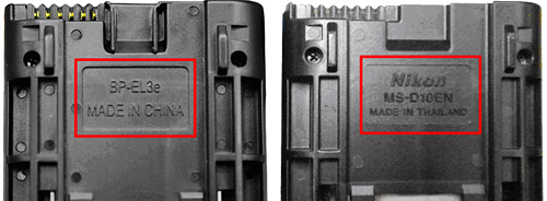 EN-EL3eホルダー MS-D10ENの刻印の部分が、「BP-EL3e MADE IN CHINA」と表示