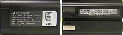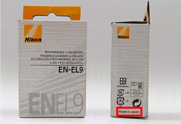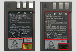 EN-EL1 ( 左側が模倣品、右側が純正品 )