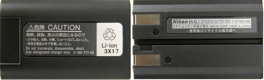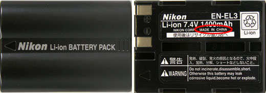 (注) EN-EL3 の純正品には、中国製 (MADE IN CHINA) もございます。
