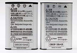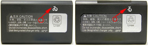 EN-EL12の表面および裏面(左側が純正品、右側が模倣品)
