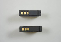 EN-EL12の上面(端子面)および底面(上が純正品、下が模倣品)