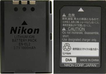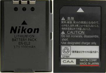 模倣品 (Nikon のロゴが無く EN-EL2、1000mAh の表記がない)