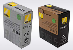 EN-EL5 の化粧箱、表面(左側が模倣品、右側が純正品)