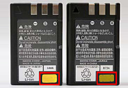 EN-EL9a の上面(端子面) (左側が模倣品、右側が純正品)