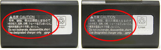 EN-EL3(左側が模倣品、右側が純正品)