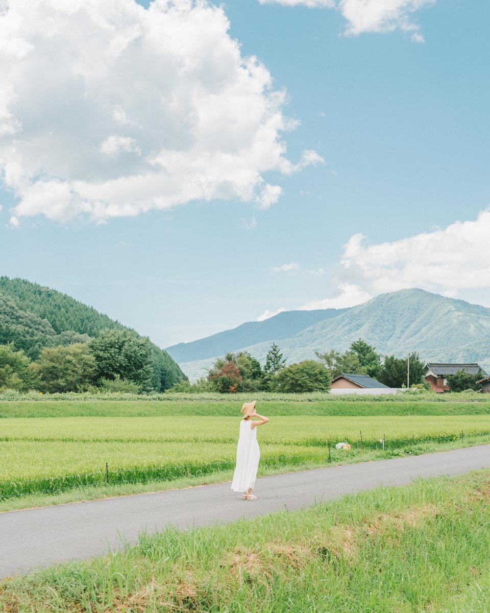 今回撮影した時期は「夏」だったので、すきっとした青空や、山や田んぼの緑が色味の中心となっていました。