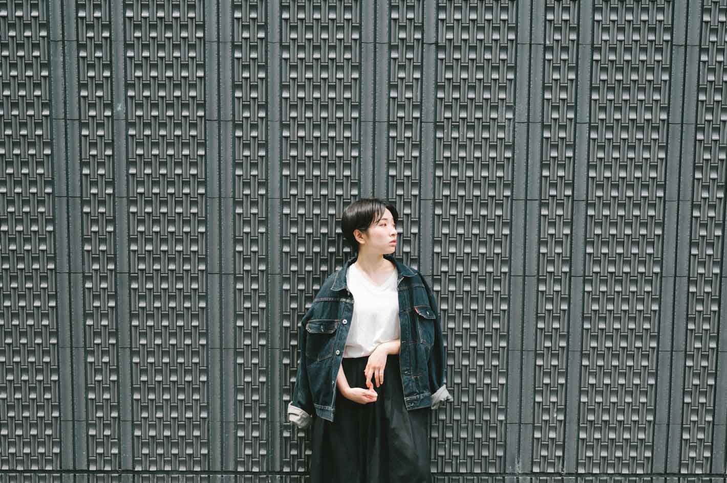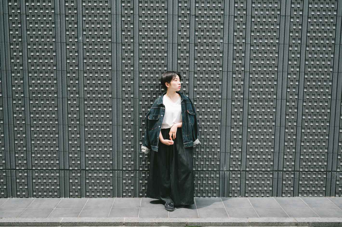 今回は全身を入れて撮影しましたが、上半身だけを切り取り、背景はすべて幾何学模様の壁にしてみるのも面白いんです。