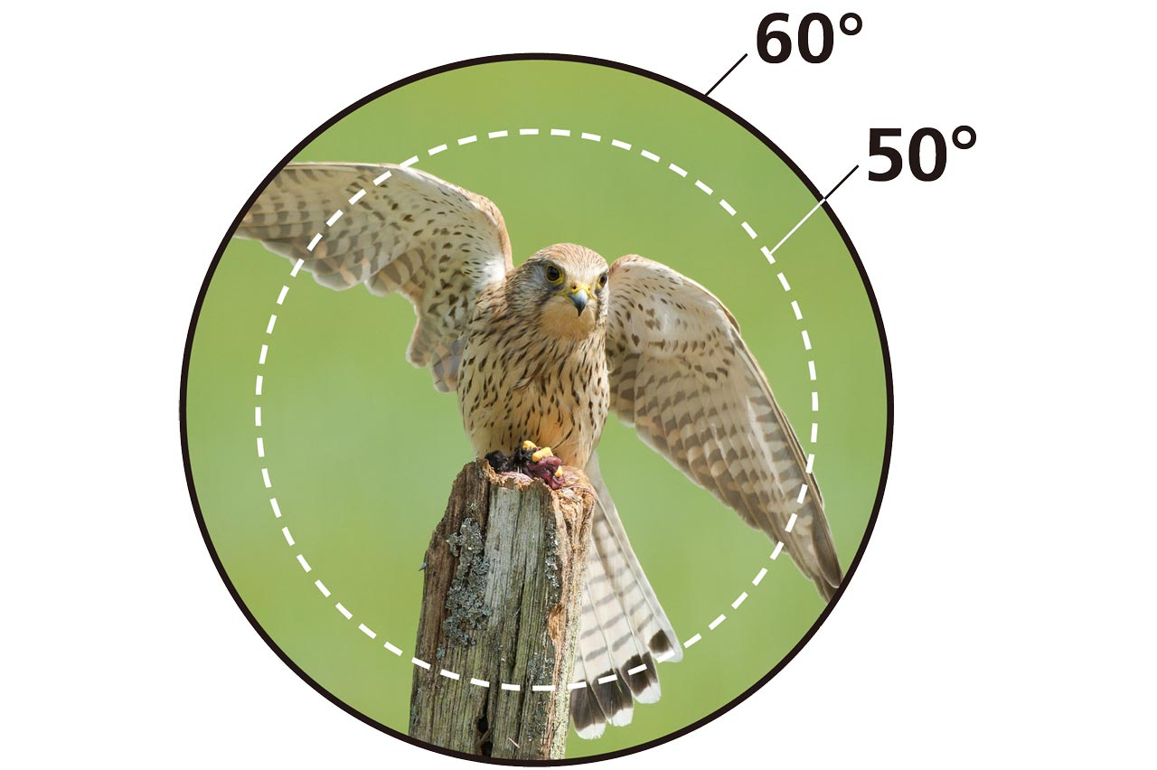 見掛視界60.8°の広視界タイプで、視界の隅々まで開放感のある観察を楽しめます。野鳥も捉えやすく、不意の動きにもスムーズに追従可能。星空観察では視界いっぱいに映し出される星空の広がりを体感できます。幅広いシーンで深い没入感を得られます。