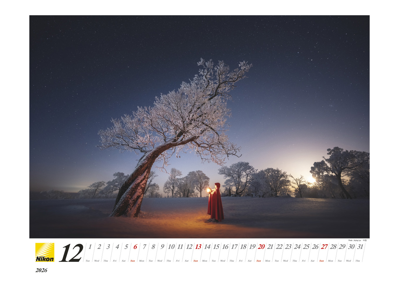 2026年版のニコンカレンダーは、世界約180の国と地域より約44,000点のご応募をいただいた2024-2025年の「ニコンフィルム&フォトコンテスト」から選ばれた写真13点で構成されています。感動的な世界各地の自然と人々をお楽しみください。