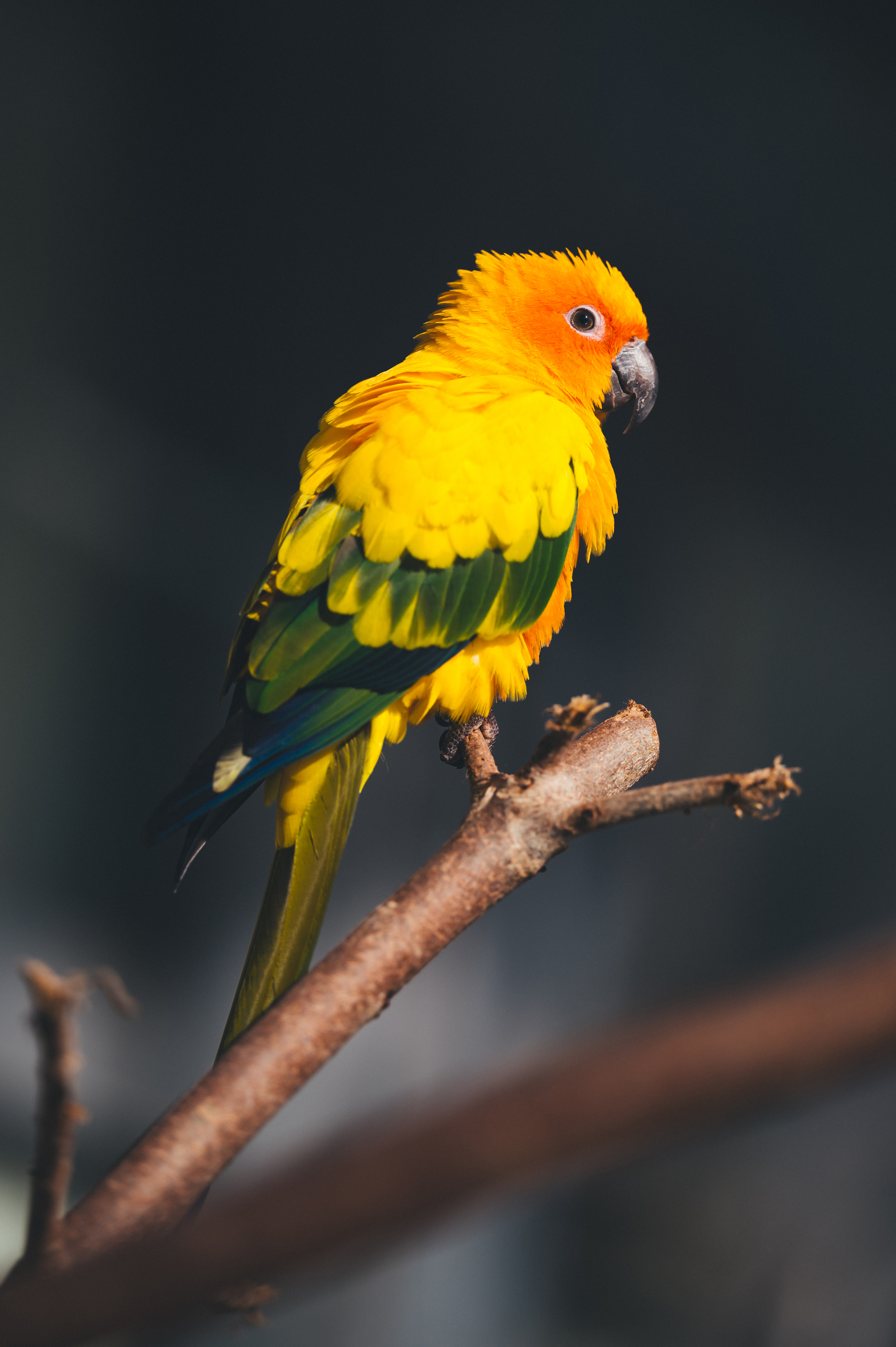 朝の光が差し込む花鳥園で、止まり木にたたずむ姿を狙って撮影。開放F値2.8で背景を溶けるようにぼかし、被写体を際立たせた。羽の1枚1枚まで精細に見える描写力とフォーカスの速さに驚いた。