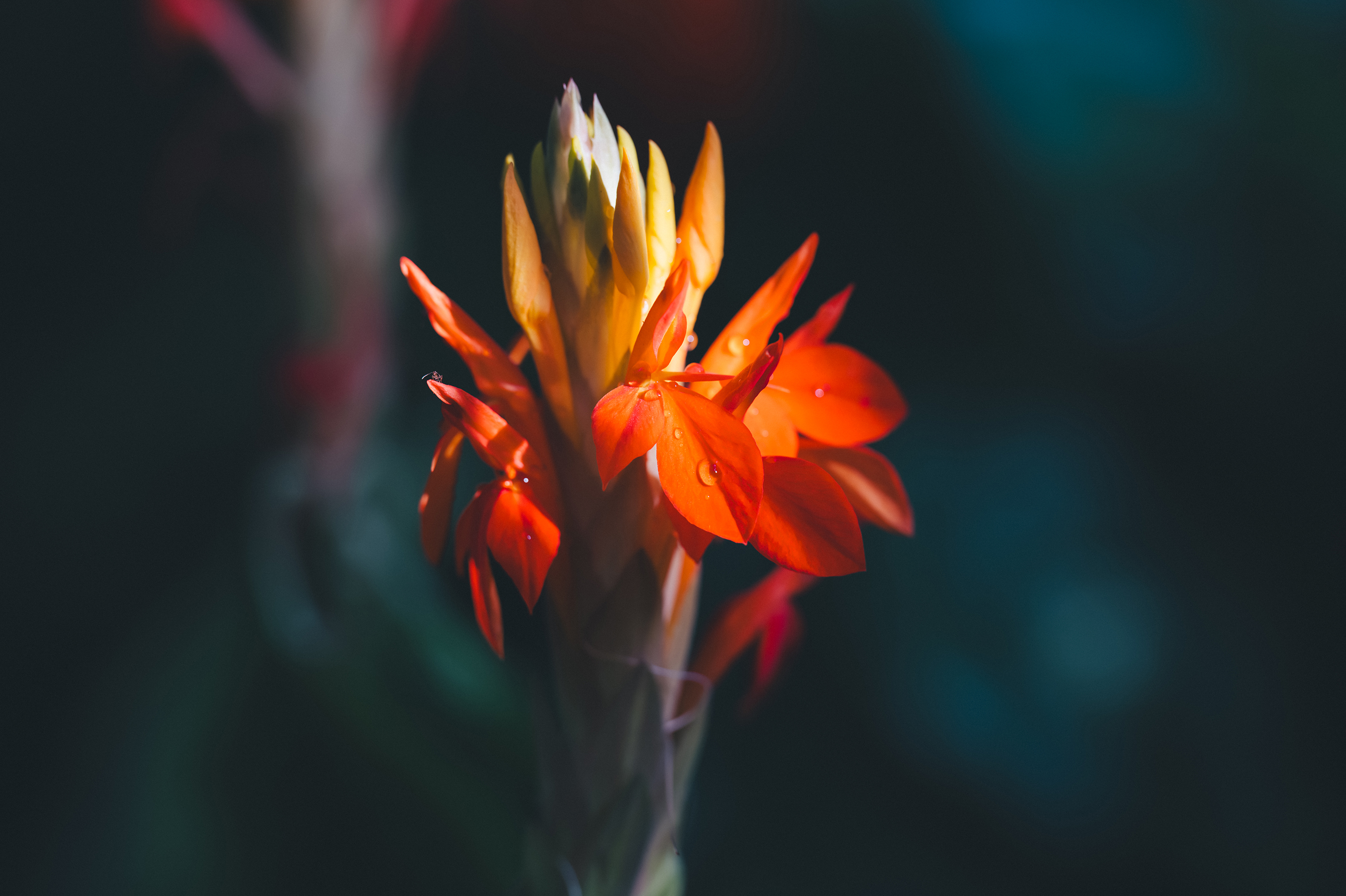 日が差し込む植物園の中で、偶然目に留まった花をそのままの距離感で捉えた1枚。良い写真になると予定して撮ったものではなかったが、レンズは滑らかなボケと高い解像力で応え、花びらに残る水滴の質感まで繊細に描写してくれた。