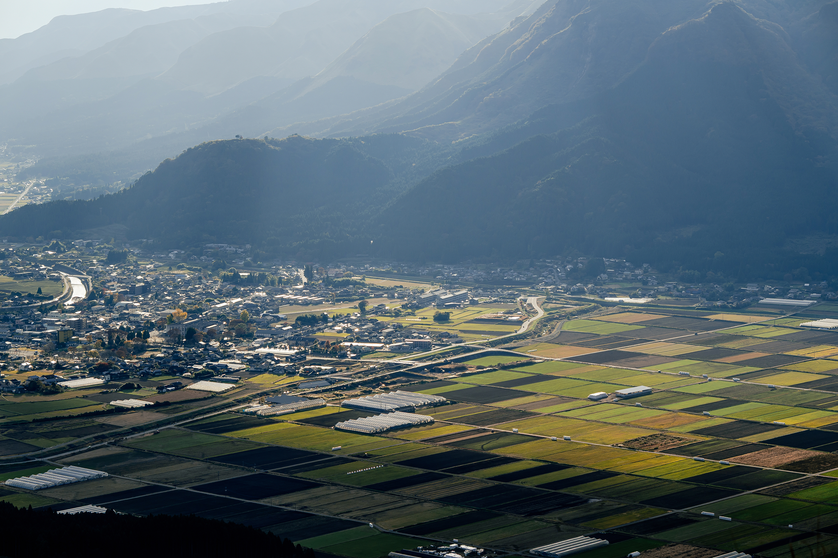 阿蘇の展望台で夕日を待っていたところ、遭遇した天使のはしご。阿蘇市の田んぼに降り注ぐ光と影のコントラストや、少しかすんだ空に山の連なりが映える美しい1枚となった。あえて105mmで画角を狭めて空を写さないことで、主題を引き立たせる構図にできた。