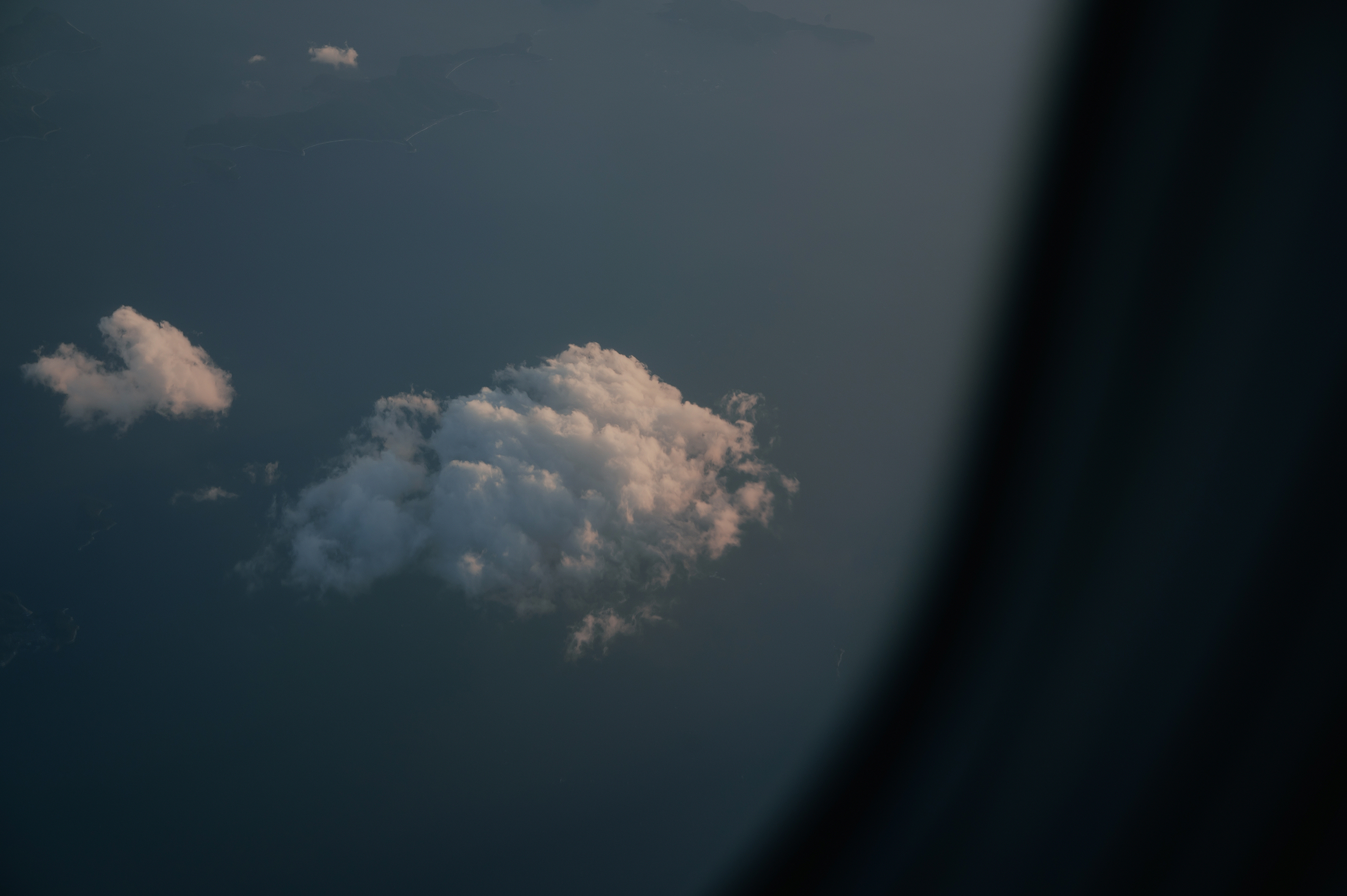 日が沈む頃、まだ明るさが少し残る時間、旅へ向かう飛行機から見えたふわふわとした雲がかわいく感じて撮影した。あえて飛行機の窓枠を入れることで情報量を増やし、旅の始まりを表現した。Z5IIと組み合わせてもとてもコンパクトで、狭い機内でも取り回しやすい。撮りたいときに苦にならないサイズ感は大事だ。