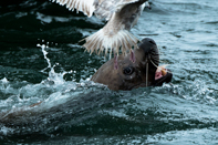 クルーズ船と並行して飛ぶカモメを的確に追い続けるため高速連続で撮影した。D500のAFエリアモードをグループエリアAFに設定しておくと、選んだフォーカスポイントの周囲のフォーカスポイントも使用して面で被写体を捉えることができる。動きの激しい被写体にも確実にピントを合わせてくれるので、ピントのことはカメラに任せっきりにして、撮影タイミングと構図に意識を集中できるのはありがたい。力強く羽ばたくカモメの躍動感が、翼のブレと流れる海面で表現できた。