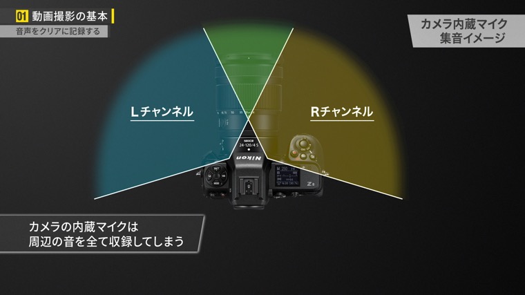 カメラだけでも音声を収録できますが、内蔵マイクではカメラの操作音や周辺の全ての音を拾ってしまうため、狙いたい音をクリアに収録するのは難しいと思います。