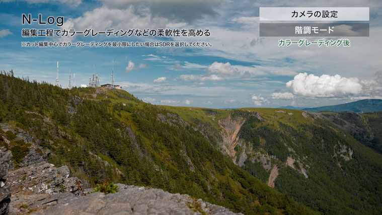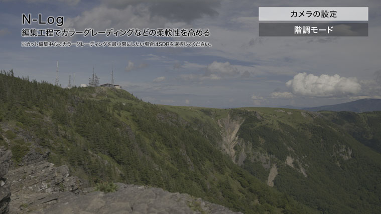編集工程でカラーグレーディングなどの柔軟性を求める場合は、広いダイナミックレンジを記録できるN-Logがおすすめです。