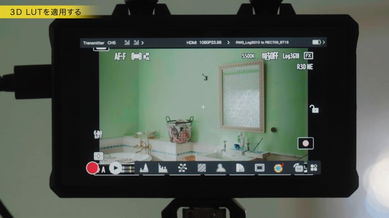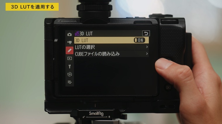 このLUTの効果は、HDMI端子から出力される映像には適用されないため、外部出力のイメージにLUTを適用するには、LUT対応の外部ディスプレイを活用する必要があります。
