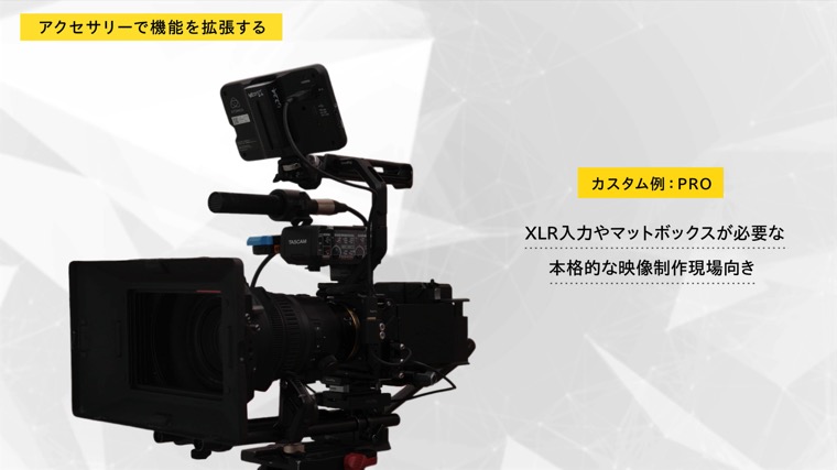 ZRはアクセサリーなしでも撮影できるALL-IN-ONEな設計になっていますが、ご自身の撮影スタイルに合わせて、最適なセットアップを探してみてください。