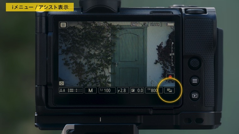 ZRでは、よく使う機能を設定できる”iメニュー”の他に、グリッドや輝度情報、収録中の赤枠表示などの切り替えに、”アシスト表示”が便利に使えます。